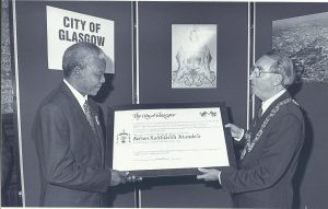 9 October is the the 32nd anniversary of Nelson Mandela’s visit to Glasgow to collect the Freedoms of 9 UK cities, district and boroughs in 1993.
